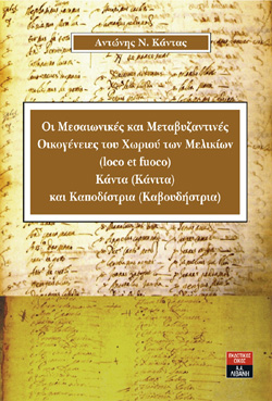 Οι Μεσαιωνικές και Μεταβυζαντινές Οικογένειες του Χωριού των Μελικίων (loco et fuoco) Κάντα (Κάνιτα) και Καποδίστρια (Καβουδήστρια)